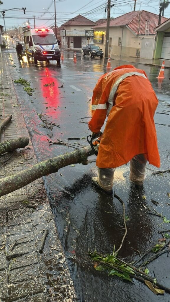 A Defesa Civil informou que recebeu diversas ocorrências relacionadas à queda de árvores e galhos, tanto na área urbana quanto na zona rural. Desde domingo, equipes do órgão e do Corpo de Bombeiros atuam no atendimento às ocorrências e na desobstrução de vias.